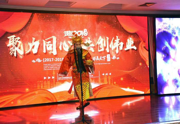 晚会伊始由薛裕平薛总为大家致以新年美好的祝福,希望全体员工在2018年取得更好的成绩。