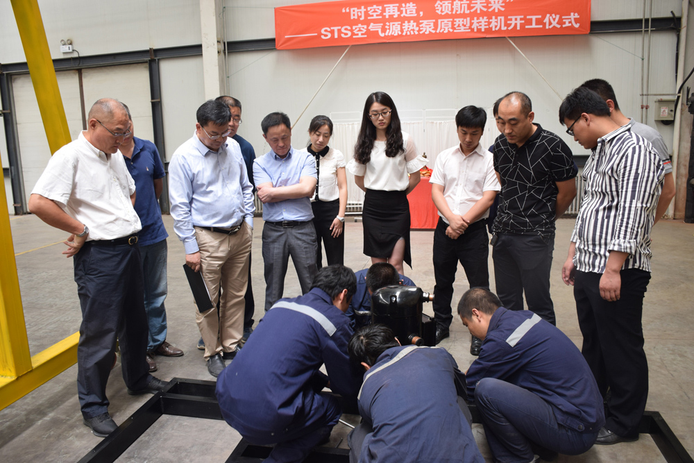 仪式最后,所有人员集体观摩原型样机压缩机装配,以宣布STS空气源热泵机组原型样机正式开工,并为此刻合影留念。