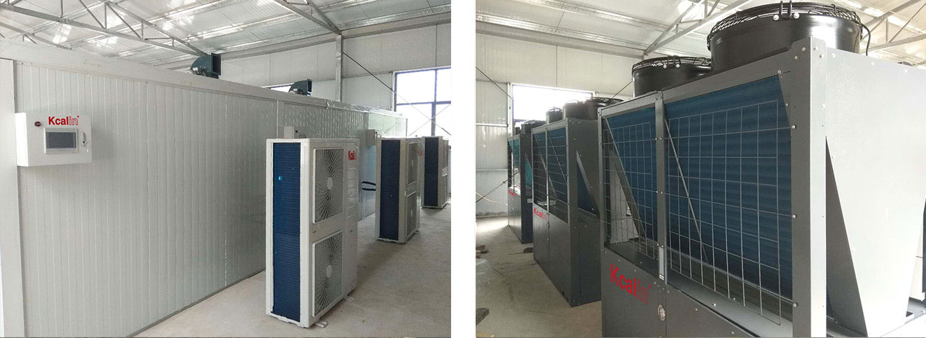 卡林河南菊花种植基地-空气源热泵烘干项目位于河南汝阳付店镇火庙村。该种植基地菊花烘干厂房预计年产量10吨,总烘干面积351㎡,分为13个烘干房,每个烘房面积27㎡。菊花烘干系统全部采用卡林空气源烘干热泵机组,其中包括24匹热泵烘干机9台,7匹热泵烘干机4台,配套室内风冷换热器以及循环风机、排湿风机。该系统以空气中的低品位能作为动力,利用少量电能驱动压缩机运转,实现能量的转移,为菊花烘干提供所需热能,高精度智能控制,高品质保留菊花烘干后的原色、原味、原形,成品率高。